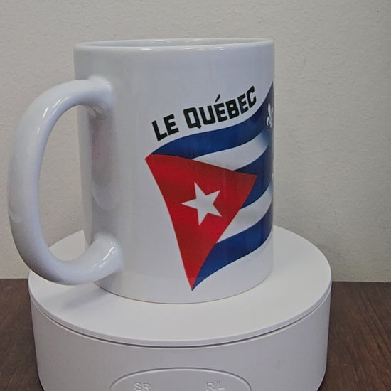 LaCubaQuoise Soutien le Quebec 12 oz ceramic mug comes with a wooden coaster