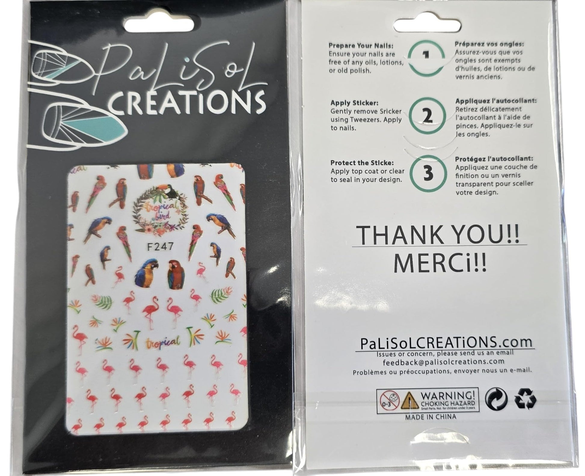 Tropical Parrot Birds Nail Art Stickers with Pink Flamingos, Colorful! Paradise Tucan